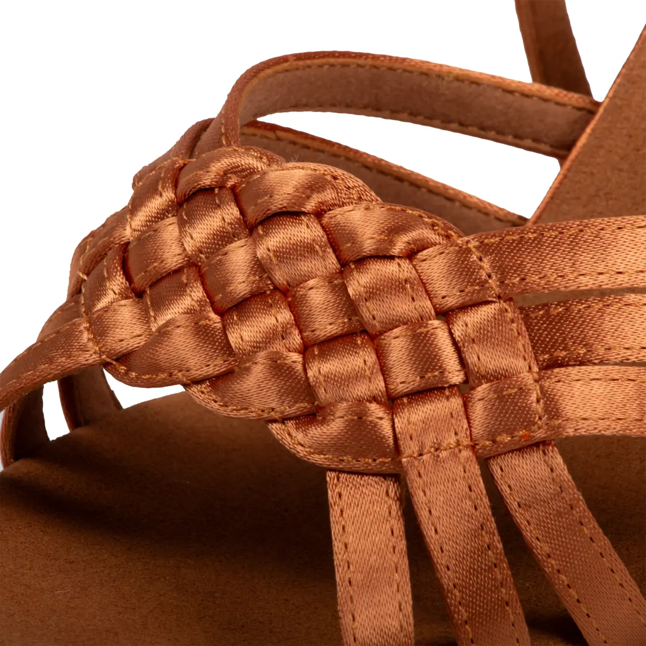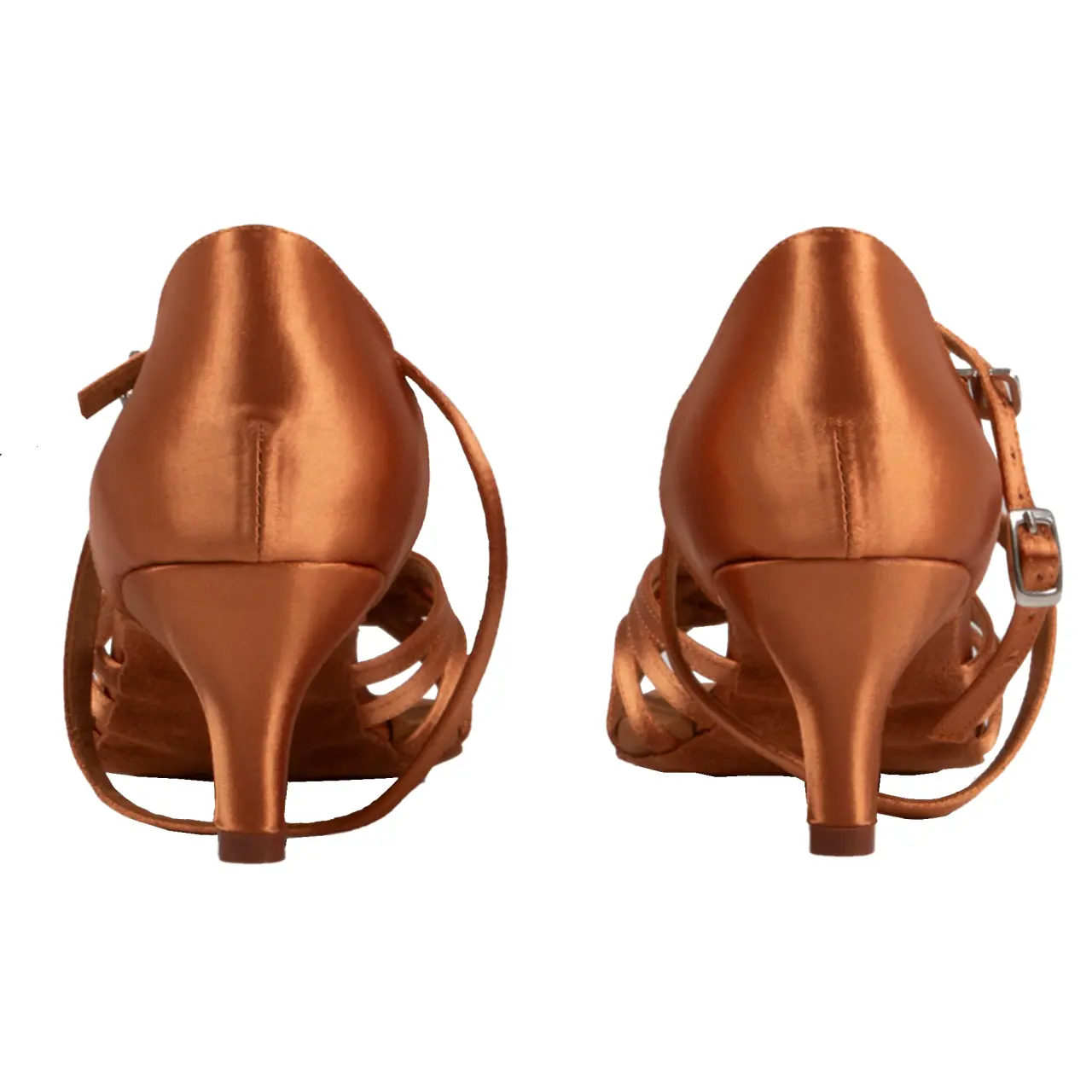 Umieszczenie cienkich pasków na bucie tanecznym z przodu w pobliżu palców oraz z tyłu w pobliżu podbicia ma za zadanie stabilnie trzymać stopę w bucie i ułatwiać szybkie ruchy nóg. But jest lekki, wkładka miękka, wyściełana. Projekt podkreśla także jakość użytego materiału, łatwo elastycznego zamszu, z którego wykonana jest podeszwa oraz satyny, z której wykonana jest cholewka buta do tańca. Szybkie zapięcie na podbiciu ma klasyczną srebrną klamrę. Prosty rodzaj pięty jest często stosowany w sportach tanecznych. Zalecamy zamawianie gotowego rozmiaru o jeden rozmiar większego niż zwykle noszony.