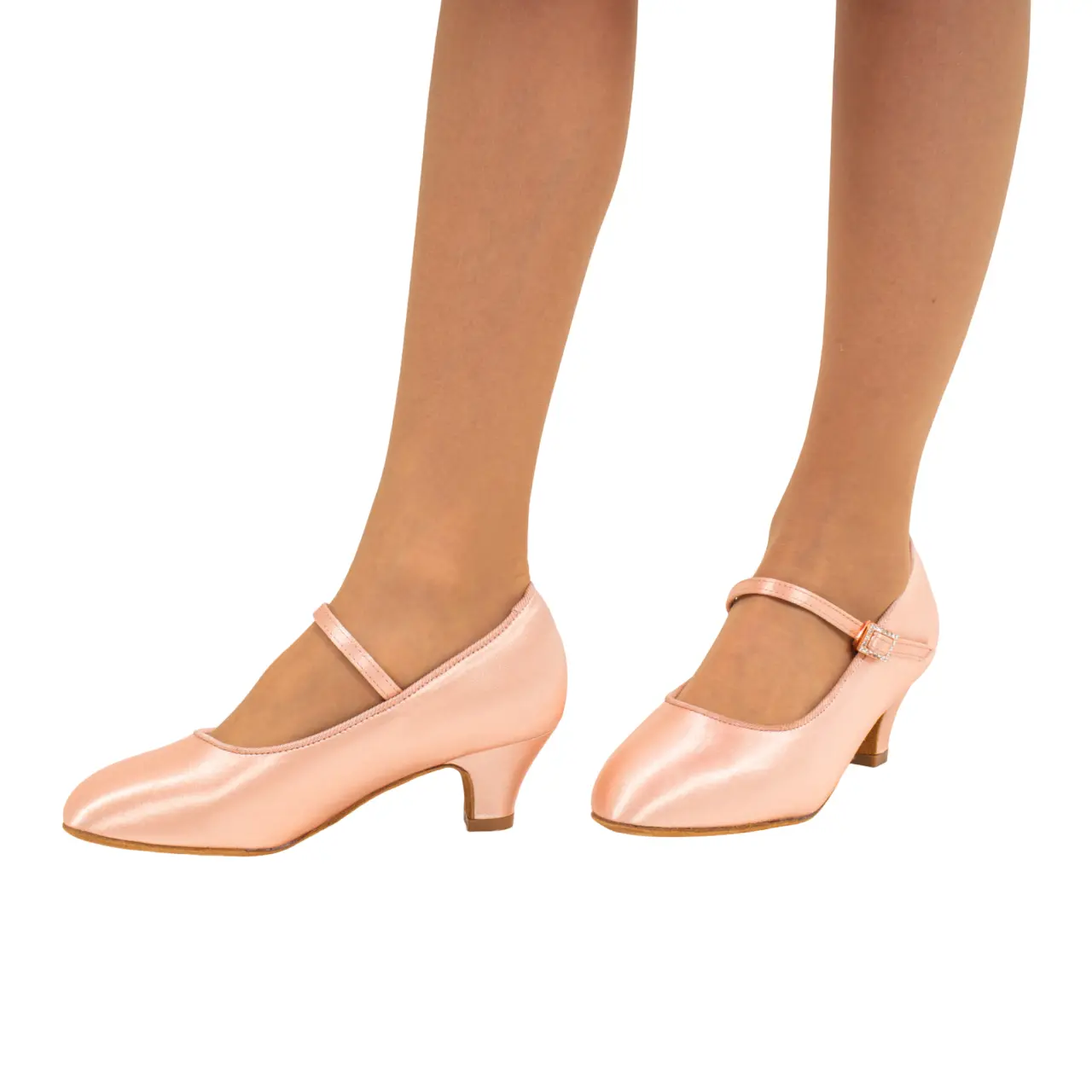 Cholewka wykonana jest z wysokiej jakości satyny w jasnym odcieniu flesh z delikatnym różowym akcentem, która wygląda bardzo subtelnie i dziewczęco. Jasny kolor pięknie prezentuje się na parkiecie i łatwo łączy się z sukienkami tanecznymi.