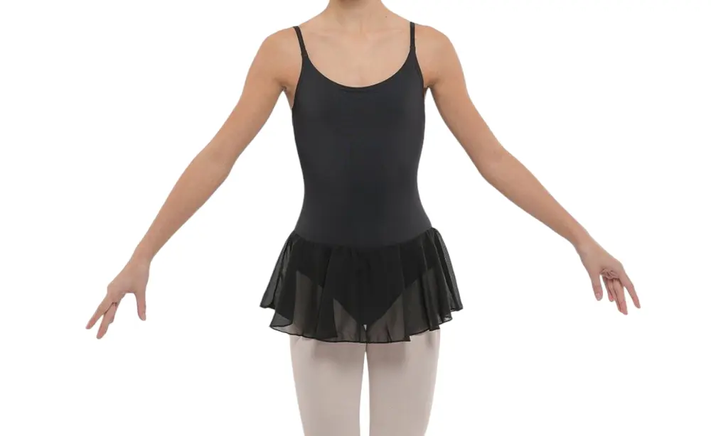 Podstawowy baletowy dres o czystych liniach należy do niezbędnego wyposażenia każdej szkoły tańca nastawionej na taniec klasyczny. Krój został zaprojektowany tak, aby spełniał wymagania pedagogów – pozwala wyraźnie widzieć pracę całego ciała, a jednocześnie prezentuje się estetycznie przez całą lekcję.
