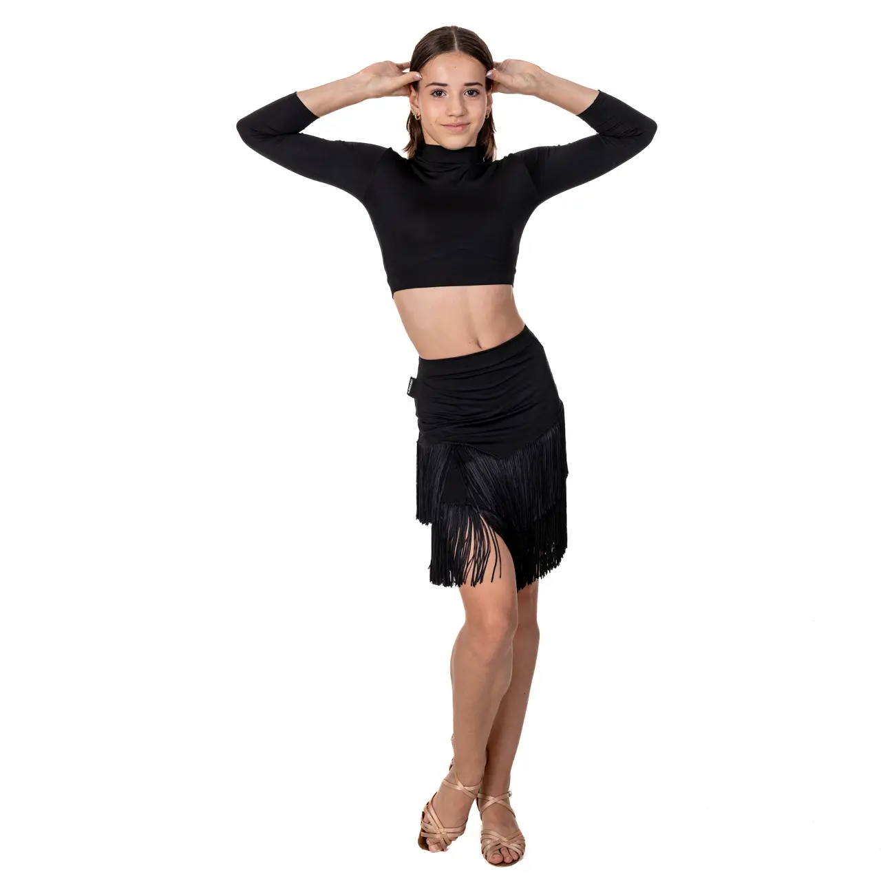 Stylowa spódnica taneczna dla dziewcząt z frędzlami Kaia Fringe jest idealna do treningu tańców latynoamerykańskich.