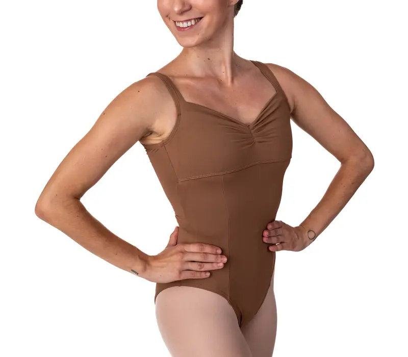 Trykot Bloch Ava z szerokimi ramiączkami łączy funkcjonalność z subtelną elegancją. Jego dopracowany krój z cięciem pod biustem i delikatnym marszczeniem pięknie podkreśla dekolt, a zaokrąglony dekolt na plecach dodaje modelowi romantycznego charakteru.